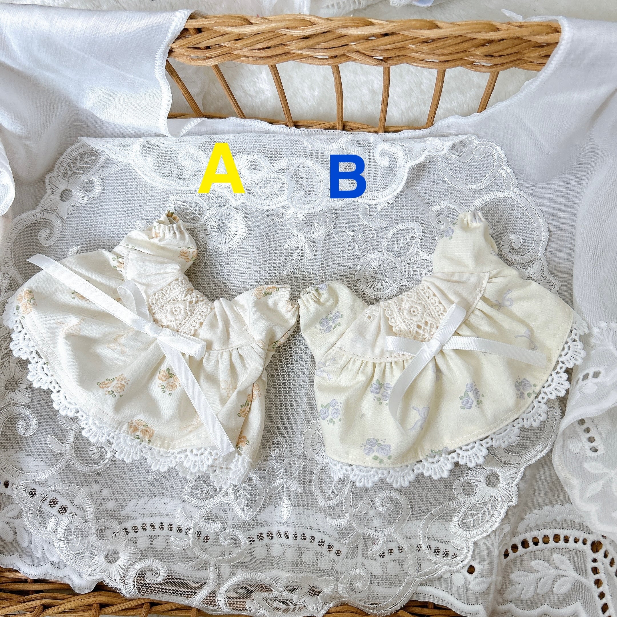 お洋服はゴムになっているので下から履かせて片手ずつ優しく着せ首元を整えてあげてください。